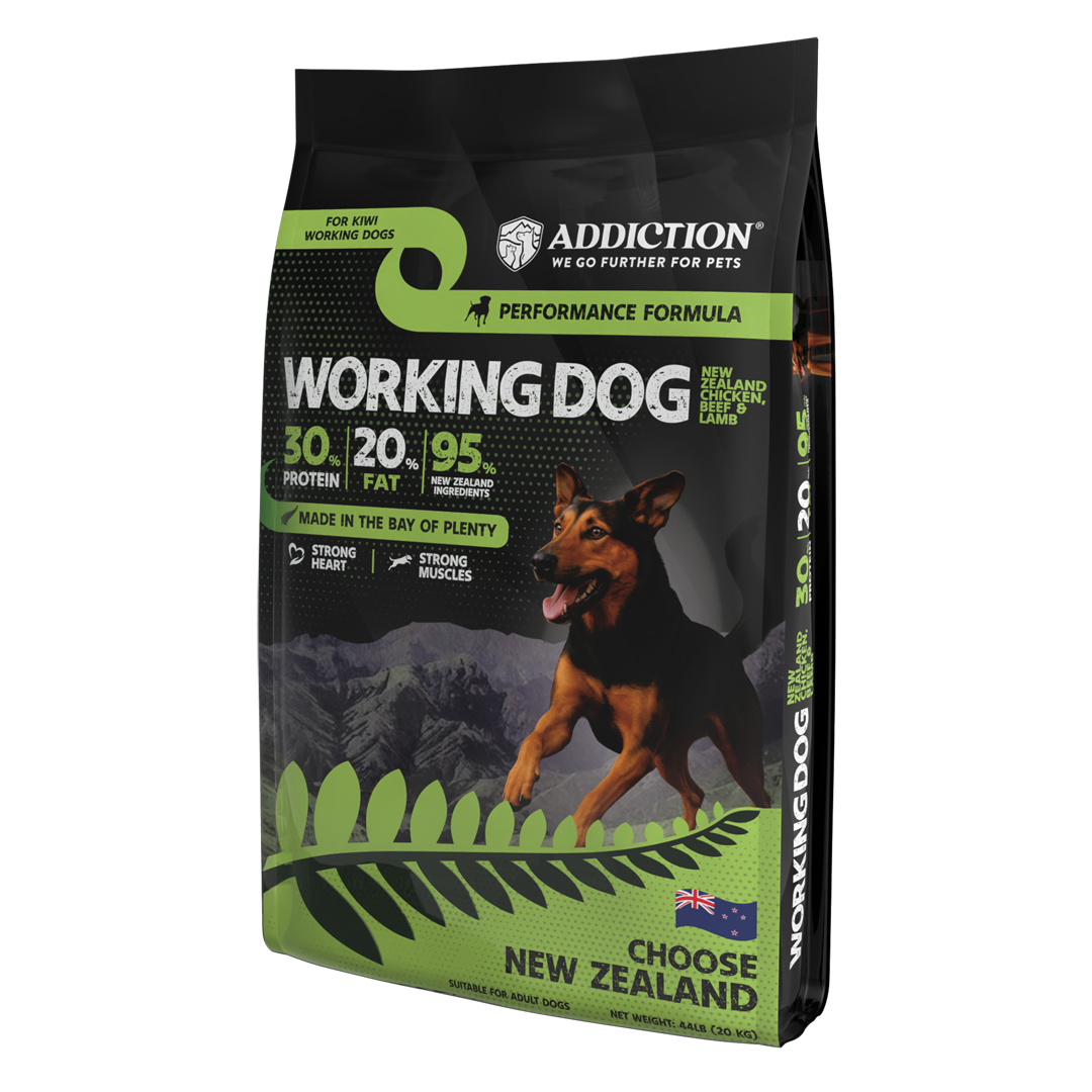 Our working dogs deserve the finest New Zealand has to offer. Crafted in the Bay of Plenty, this high-energy formula is specially developed for New Zealand’s working dogs. Made with 95% locally sourced ingredients, including premium New Zealand chicken, beef, and lamb, this food delivers the nutrition your dog needs to perform at their best every day.
