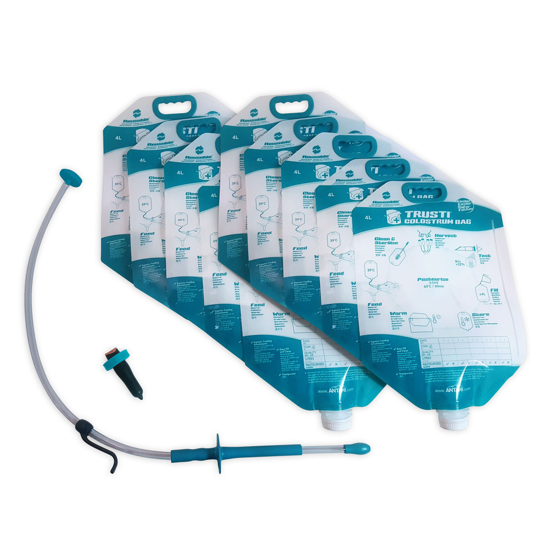 This pack allows 20 feeds (10 x reusable bags) as well as an award winning durable drencher and high quality teat/nipple to continue to use with future Trusti Colostrum Bags.