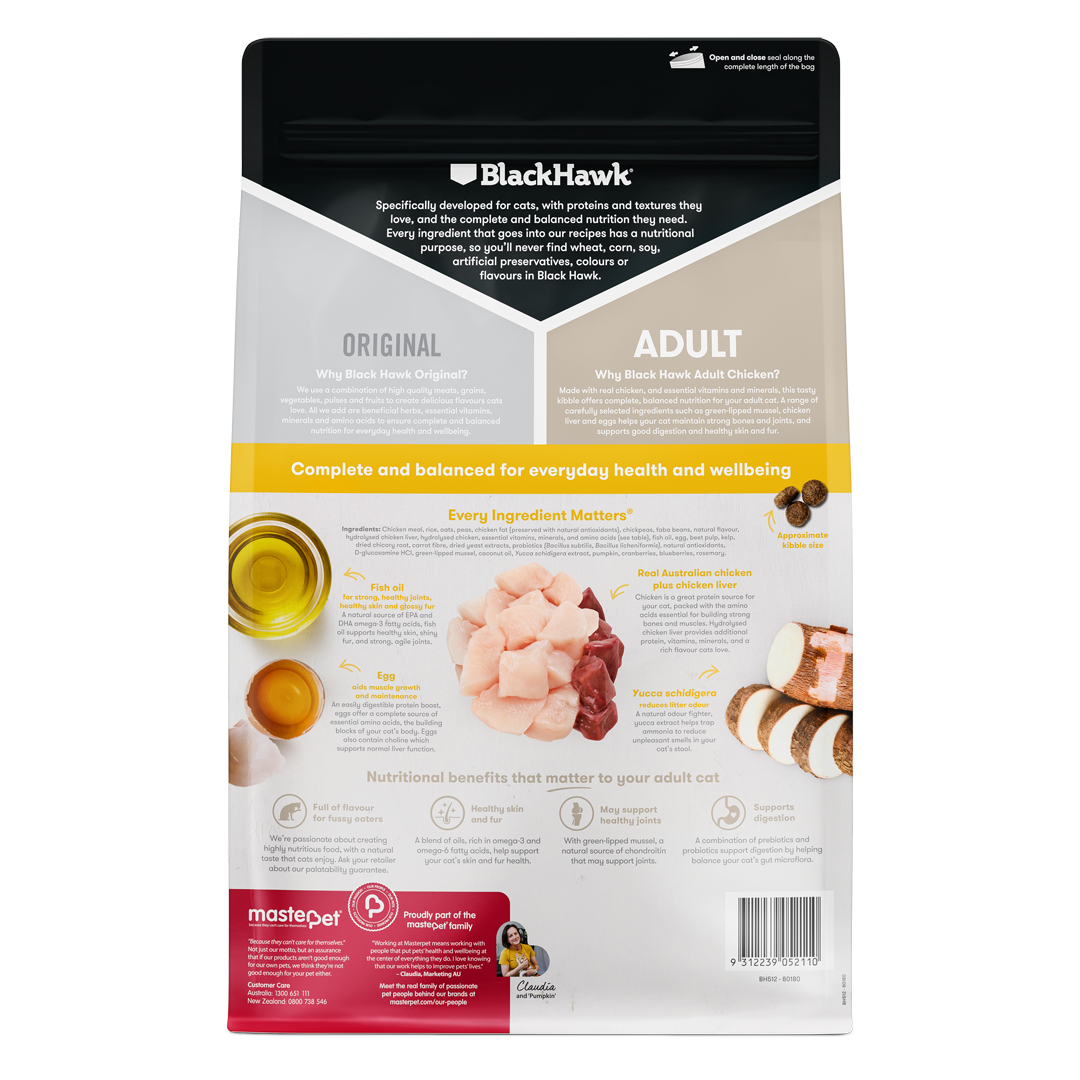 Every ingredient that goes into our recipes has a nutritional purpose, so you’ll never find wheat, corn, soy, artificial preservatives, colours or flavours in Black Hawk.