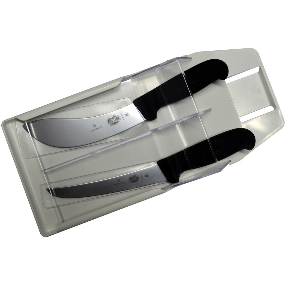 This home kill set includes a Victorinox 57803.15 Skinning Knife 15cm, a Victorinox 56503.15 Boning Knife 15cm and a 200mm triple butchers scabbard.