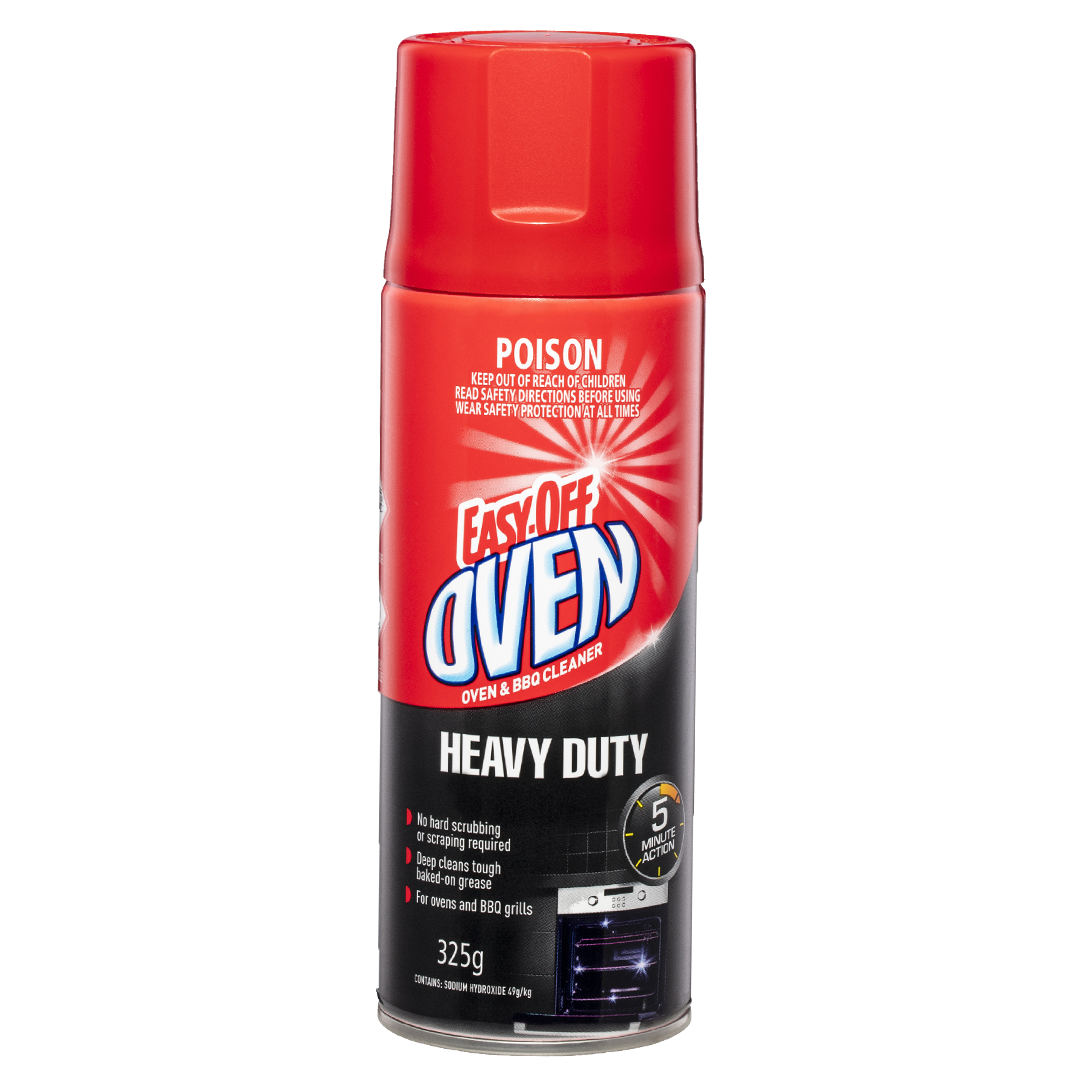 Easy Off Oven Heavy Duty Cleaner 325g – no scrubbing required! This powerful cleaner works super fast to clean a warm oven in only five minutes or a cold oven in thirty minutes.