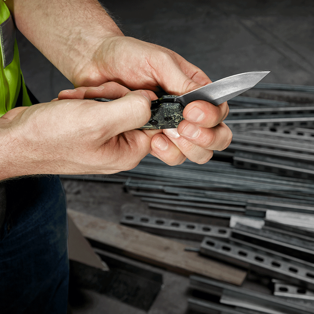 The pocket knife also features a liner lock that secures the blade while allowing you to easily close it when done. The folding pocket knife has a durable belt clip that reduces pocket tearing and includes a tether-ready lanyard hole