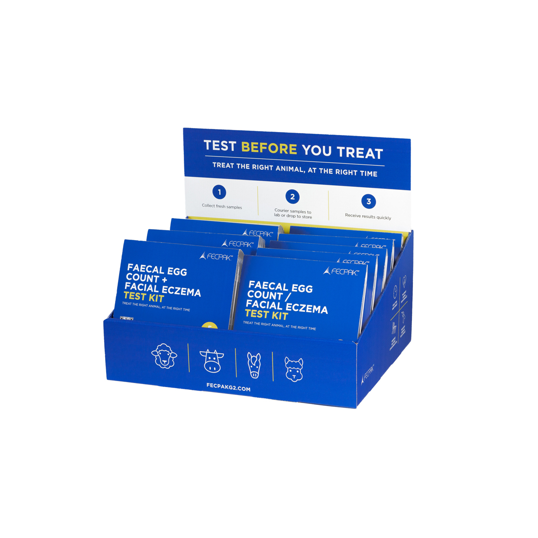 - The kit includes everything required to collect the sample, instructions on how best to collect the sample, test options (parasites in faecal egg counts or exposure to facial eczema spores), plus prepaid courier pack to send the sample off to the lab and the price includes one lab test.