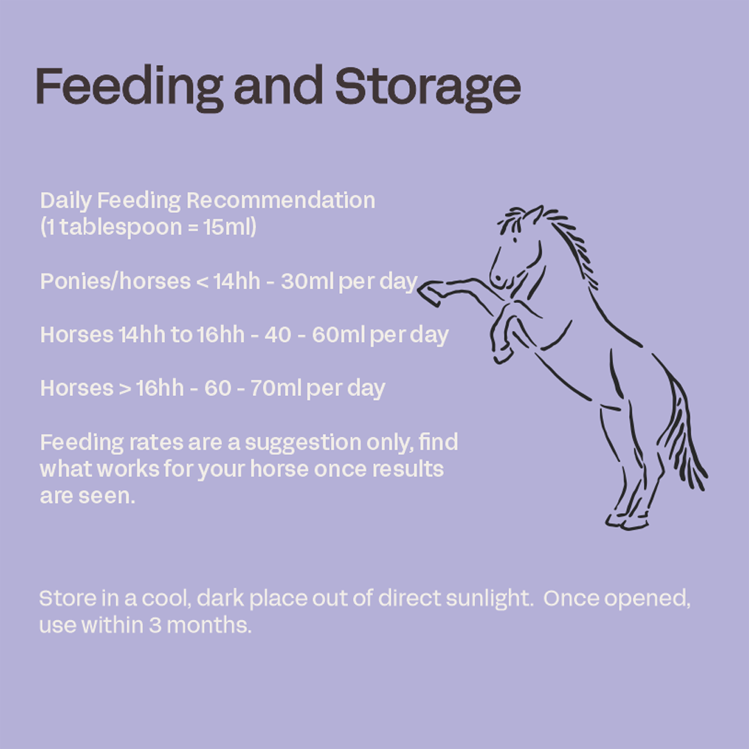 - Cool energy & recovery: a great source of cool energy, ideal for horses in work. High levels of Omega 3 promote speedy muscle recovery after exercise