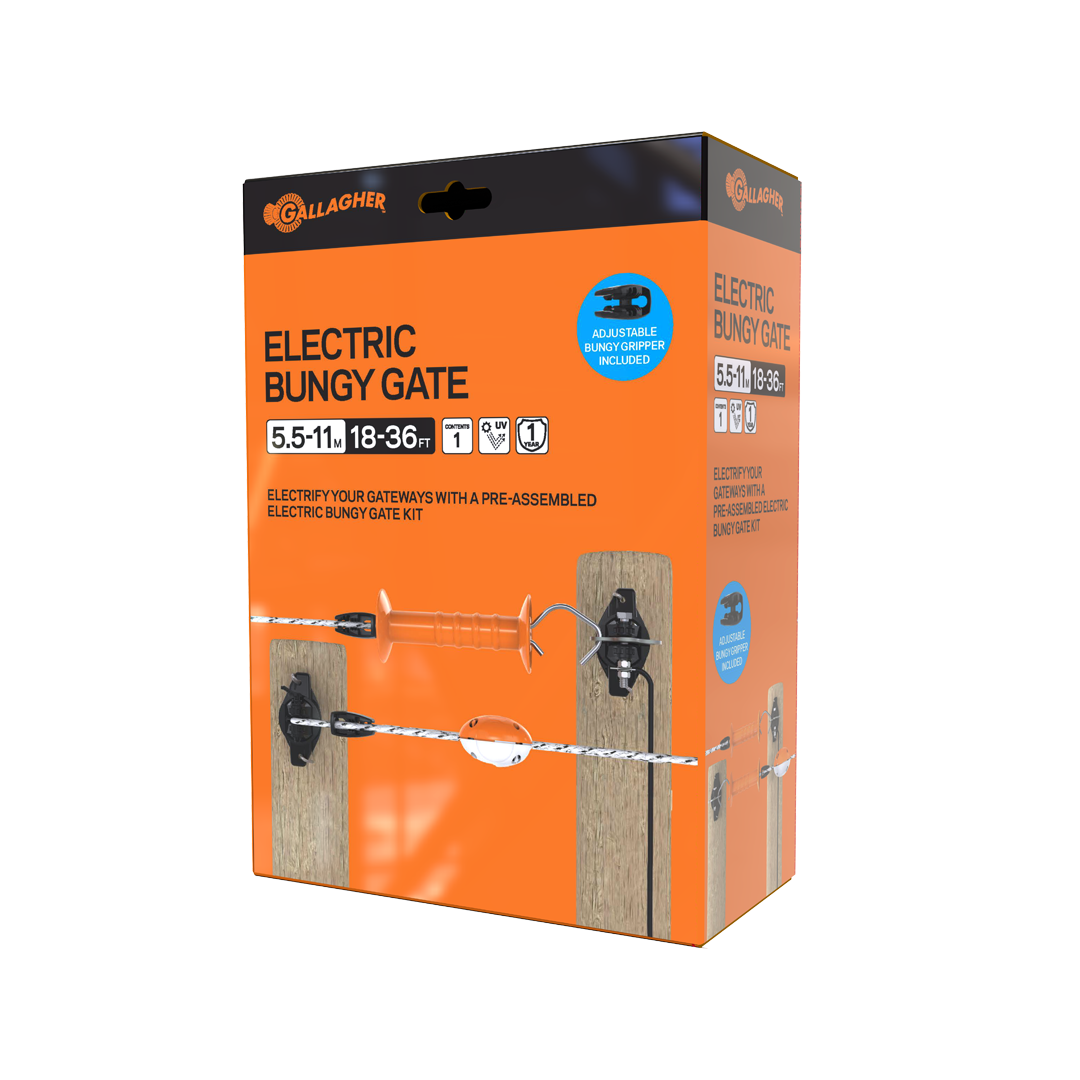 - High visibility conductive bungy gate stretches over twice its length and is ideal for on/off laneways.