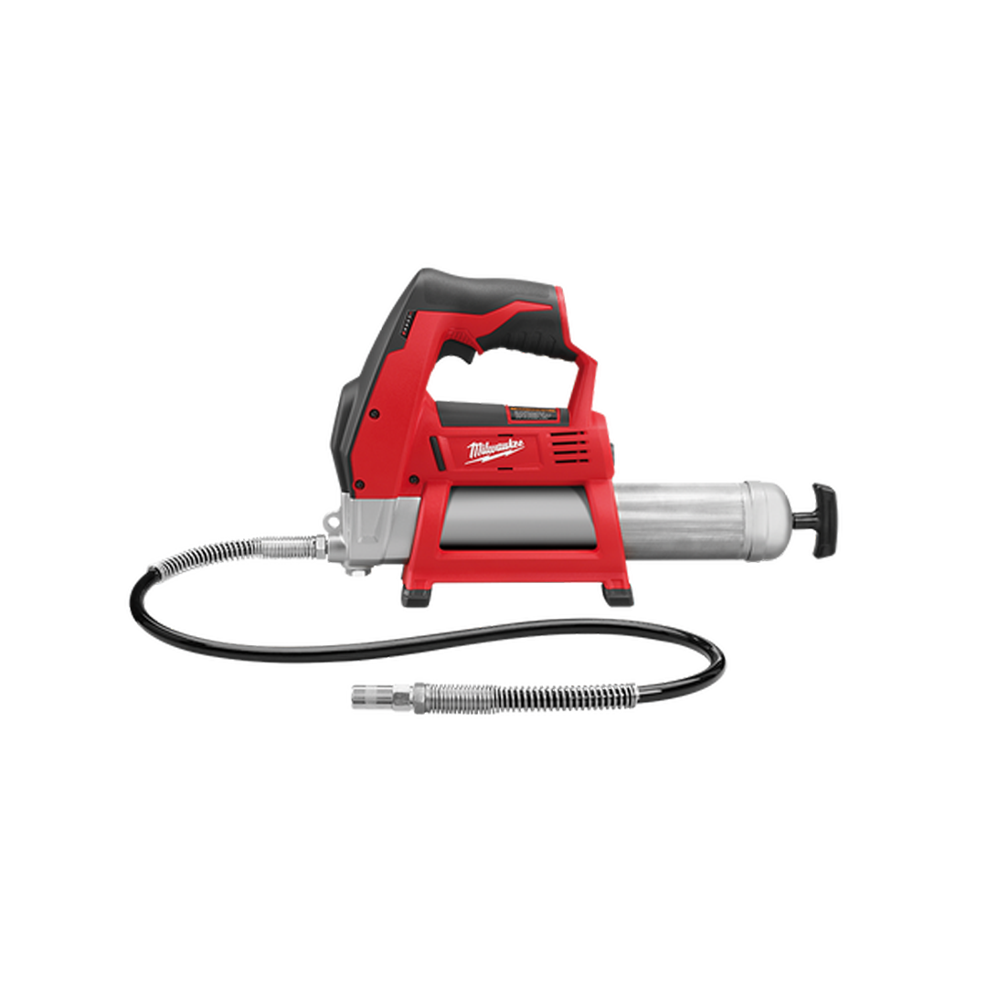 It’s capable of delivering more than 8,000 PSI max operating pressure for heavy machinery, cold weather applications and clogged grease fittings.The M12 REDLITHIUM-ION Battery (sold separately) lets you dispense up to seven grease cartridges per charge and is compatible with a variety of MILWAUKEE tools for greater workplace versatility. A lightweight, ergonomic handle offers greater comfort during prolonged use, and an onboard hose storage and shoulder strap loop offer convenience with less mess. The gun comes with a 914mm flex hose with spring guard and grease coupler.