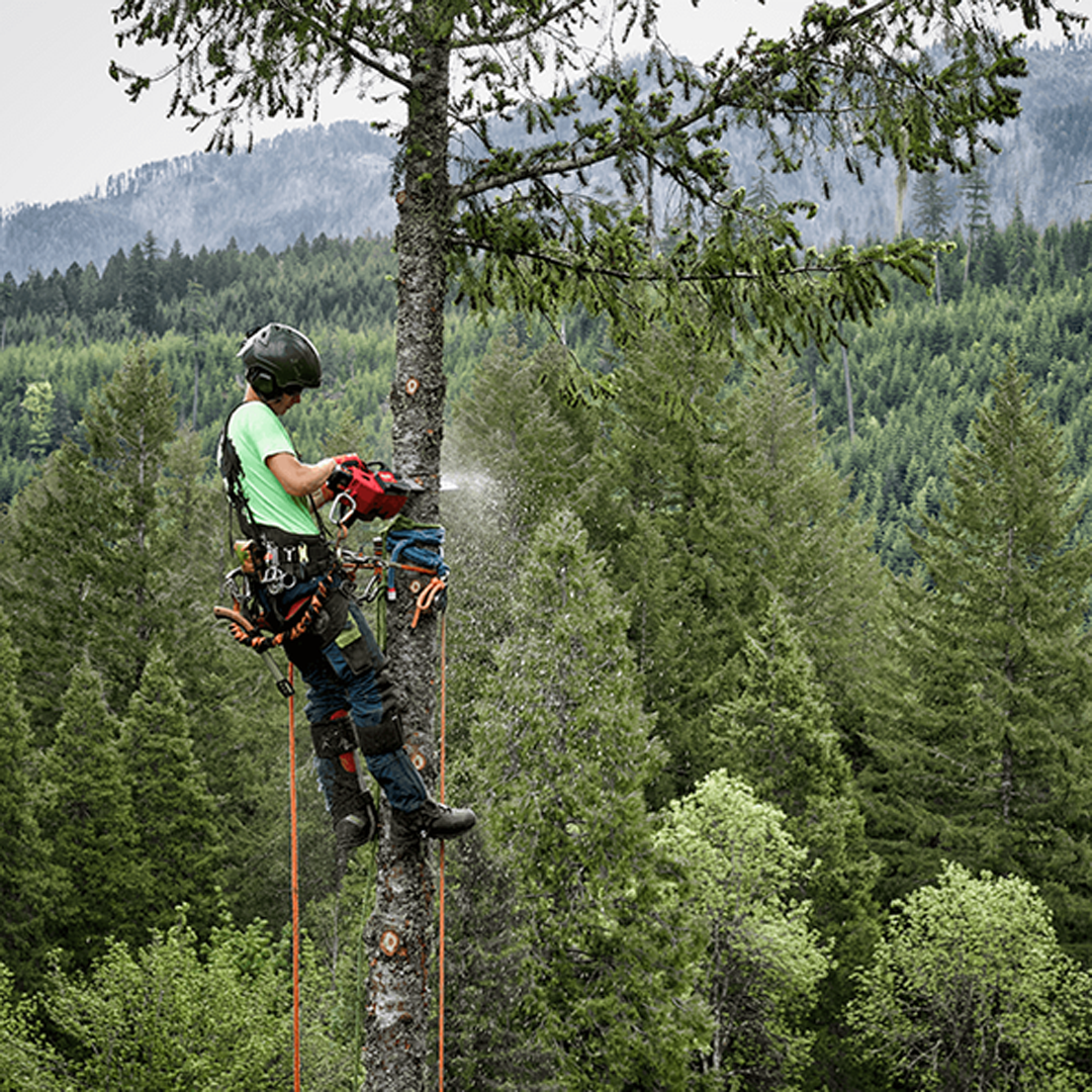- Climbing scabbard fully covers bucking spikes, locks on to saw, and has tie off points for aerial applications