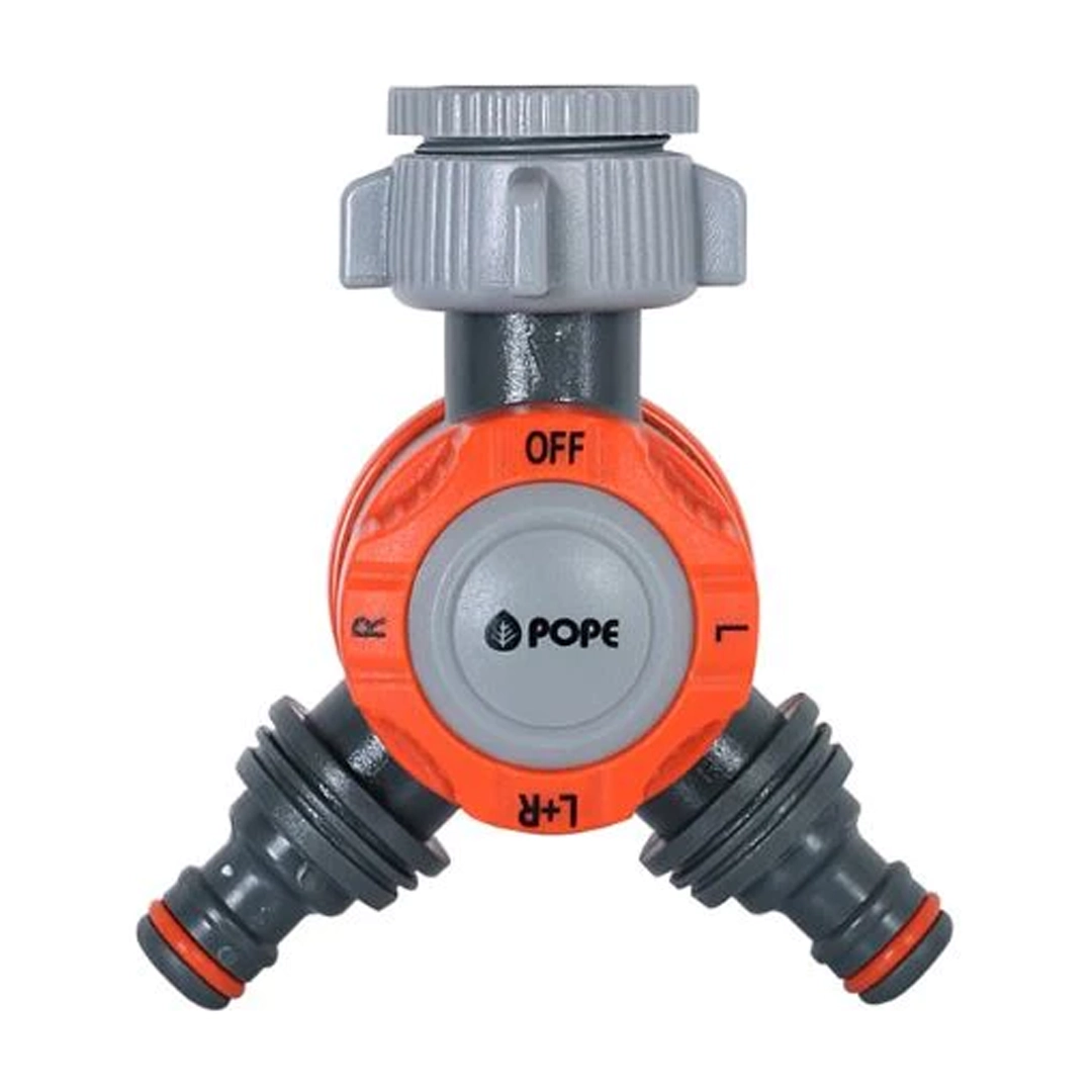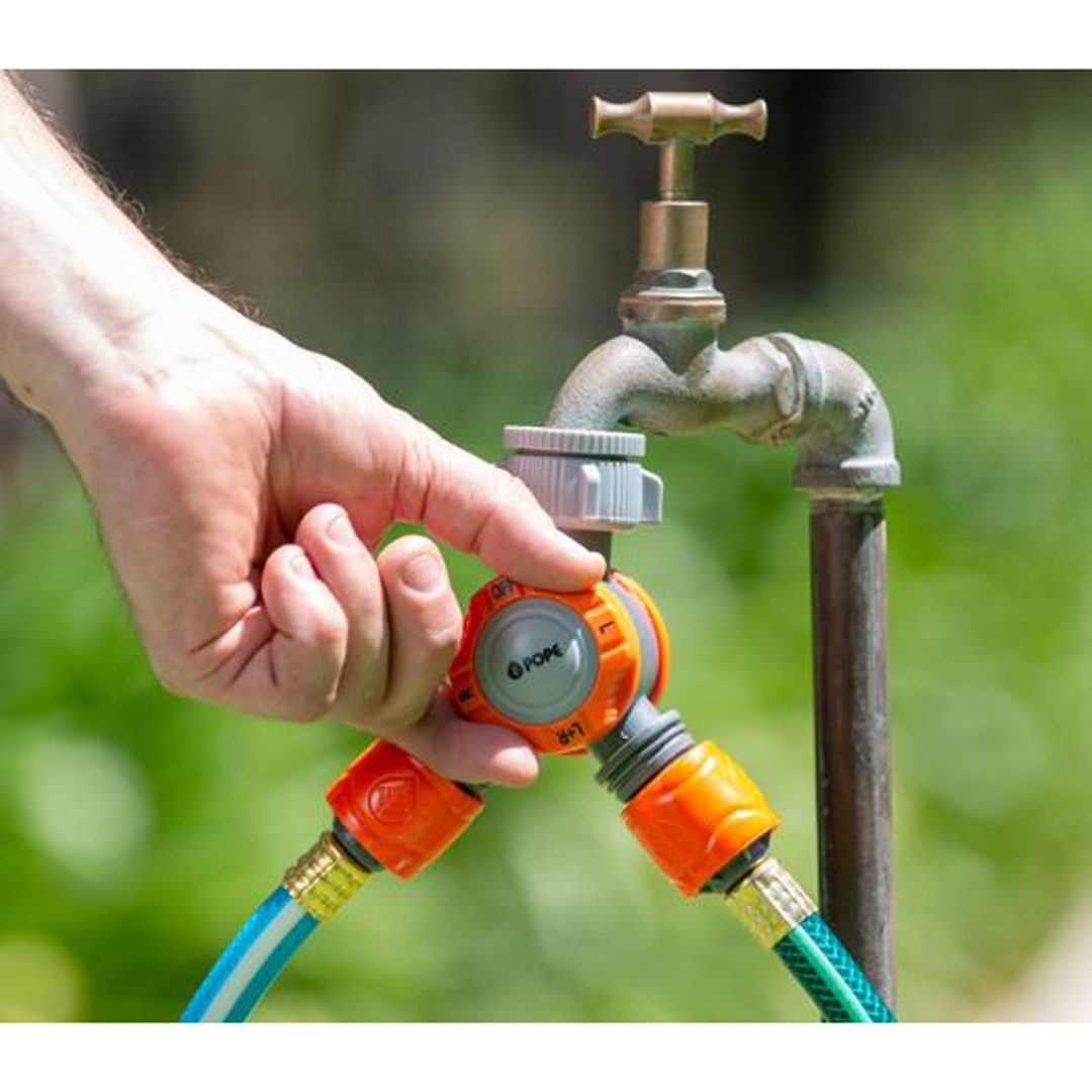 The Pope EZ Dial 2 Way Tap Snap-On provides the ability to connect two watering devices and use them independently.