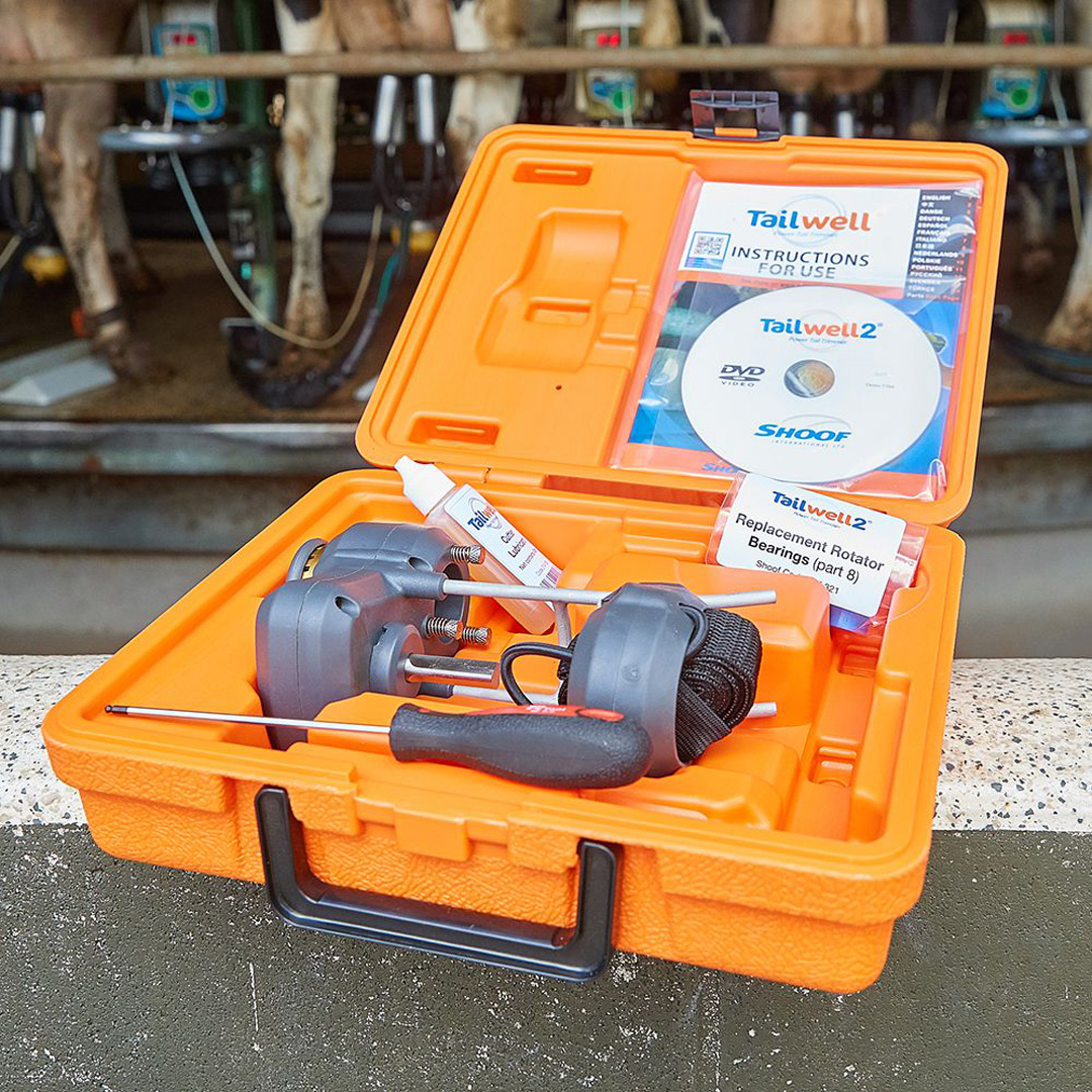 Tailwell tail trimmer has been a big success around the world, but problems occur on farms with large herds, or where cows are bedded on sand. In these cases cutter wear is an issue. We have now produced an optional model, Tailwell TITANIUM. This has a titanium-nitride (TiN)-coated cutter set. (Gold coloured.) This should be good for 5,000-6,000 clean (non-sand-contaminated) tails, or up to 3,000 sand contaminated tails.