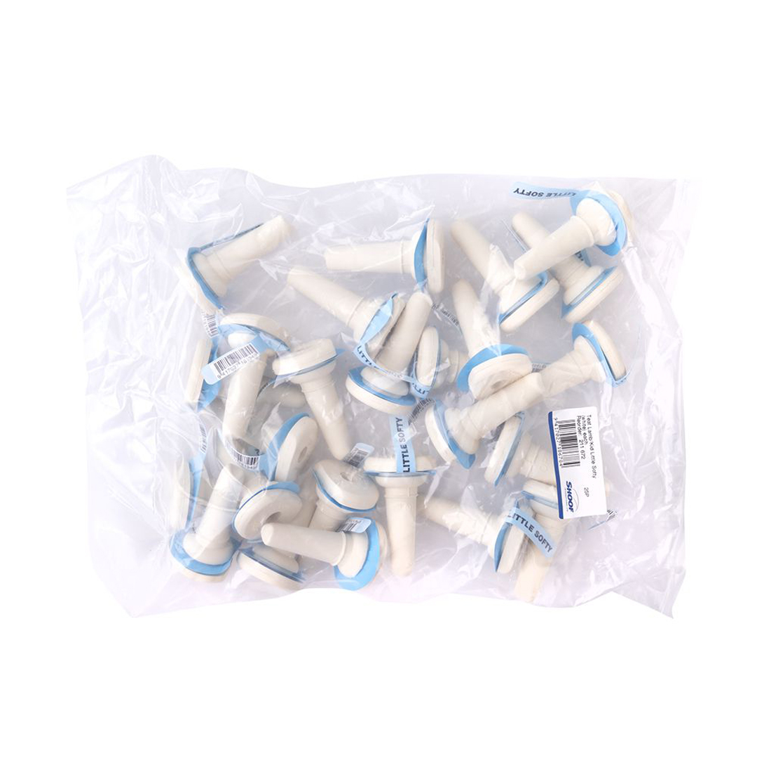 Shoof's 'Little Softy' lamb/kid teat has been designed especially for use in our gravity lamb feeders. The Little Softy features the same inverted-tip design as our famous 'Big Softy' calf teat, that is, fast-flow for hungry animals, and a non-leak quality. The Little Softy teat will fit straight into any feeders using standard New Zealand-manufactured pull-through calf teats. This enables any of these type calf feeders to be easily converted to lamb or kid feeding. Or if you wish to create your own feeder, drill 22mm holes in any suitable container. NB: The 'Little Softy' is a very soft 'starter' teat. It may not stand up to heavy use by older lambs and kids. Teats should be changed to the 'Grower' lamb/kid teat at that stage.