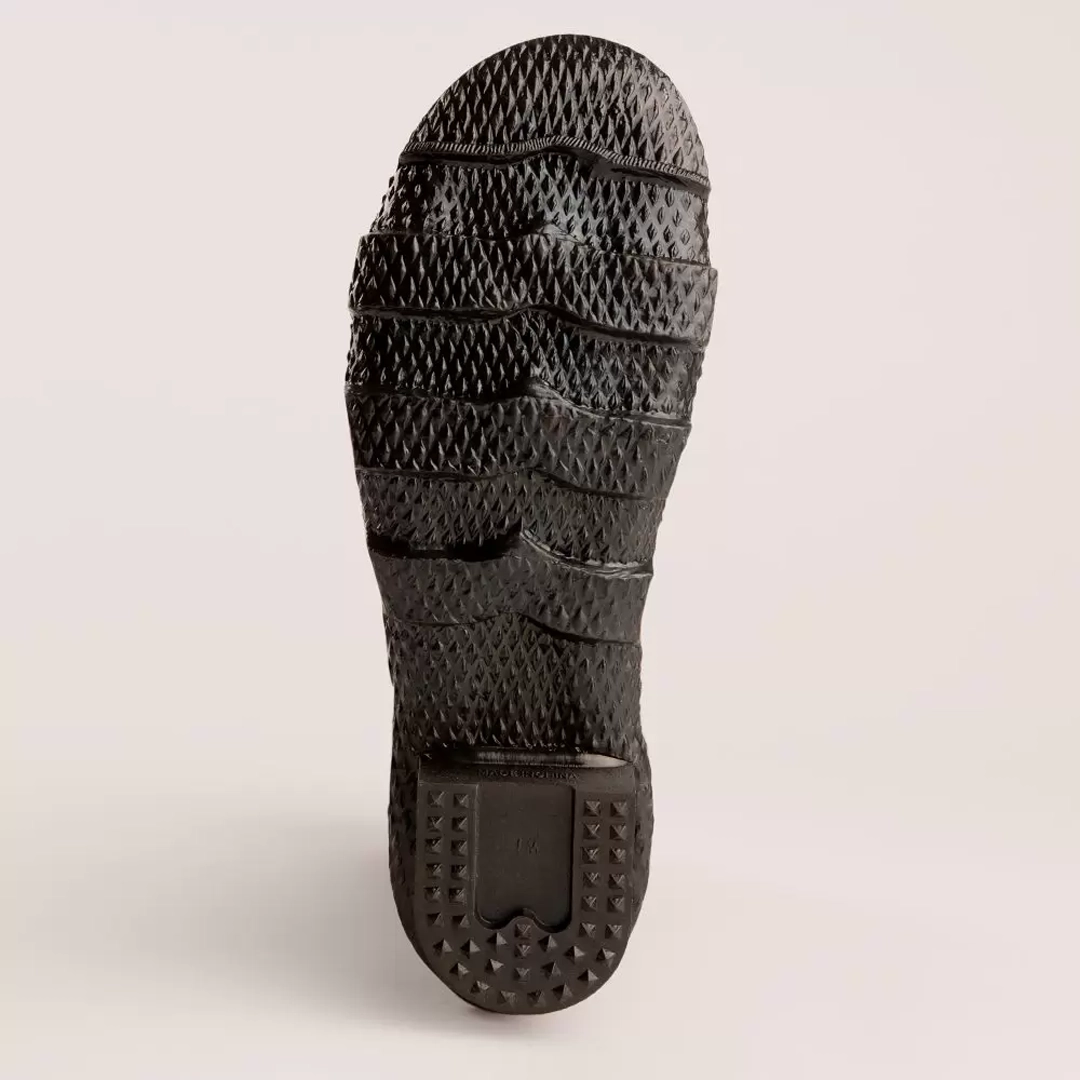 - Cleated sole won’t get clogged with mud