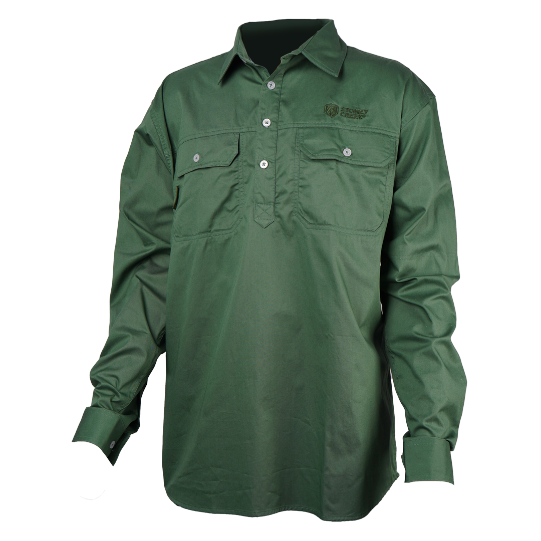 The Stoney Creek Done & Dusted Shirt is your new staple work shirt, durable and comfortable. The 100% cotton fabric will keep you cool and comfortable, while the pullover design allows for easy on-off. Chest storage pockets and a stiff collar to protect your neck from the sun.