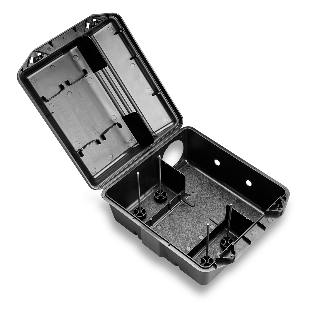 - Holds up to 8 x 28g Bait blocks or One Tomcat Rat Trap.