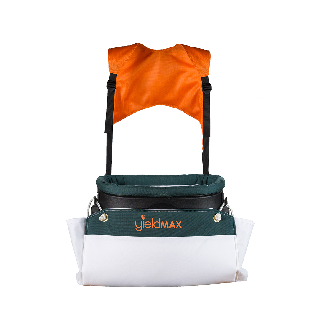 With its kidney shaped shell and larger base, the Yieldmax bucket improves wearer’s comfort by fitting the body’s shape and enhancing the emptying process. The bucket is design to nest reducing storage space and transporting costs. The YieldMax also comes with Harvestwear breakthrough Support+ harness further improving picker comfort and productivity.